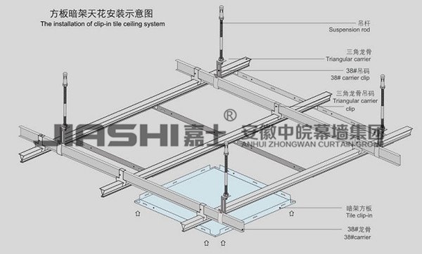 铝天花吊顶结构严密、防水性强:安装结构为防风式特殊龙骨卡扣式结构,拼密性很强,绝无间隙,防水性强; 高深龙骨、防风性强:高深龙骨上有固定模数的卡齿,金属天花针对防风性每个卡齿旁都设计有防风卡码,适合户外装饰,安全性高,可适合户外装置并可灵活组装使用,为设计师提供更广阔的构思空间。