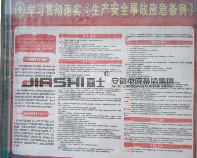 我司按照“安全第一、预防为主、综合治理”的安全方针及“管生产必管安全”的原则,积较落实企业安全生产主体责任,履行安全生产职责与义务,坚持以人为本,一切以员工的利益为重,牢固树立“先安全,后生产,再效益,持发展”的生产经营发展理念,保护员工的身体健康和生命安全,维护员工及公司的财产利益,较大限度的预防安全生产事故的发生,持续为员工提供一个安全、和谐、稳定和健康的工作环境和氛围,保护公司生产经营有序稳健进行。