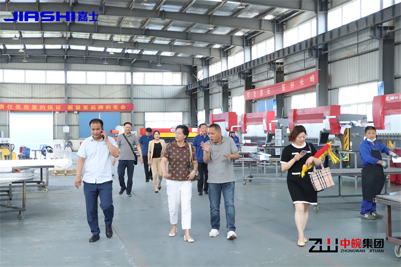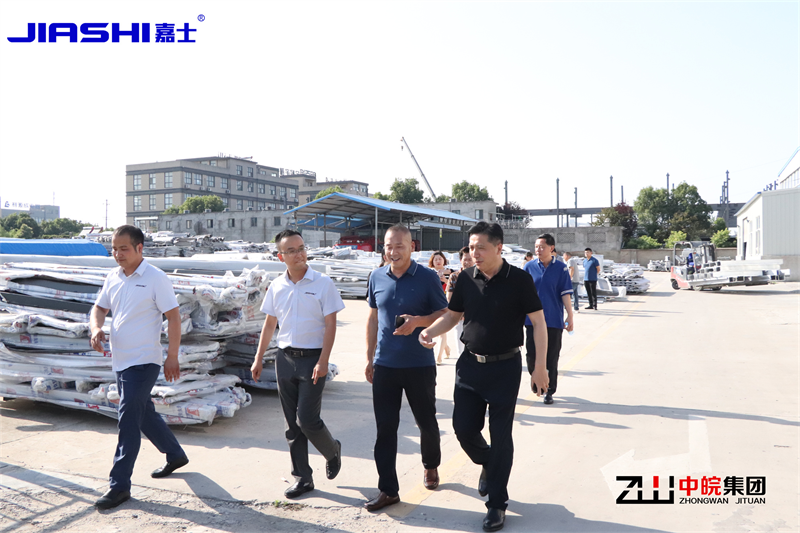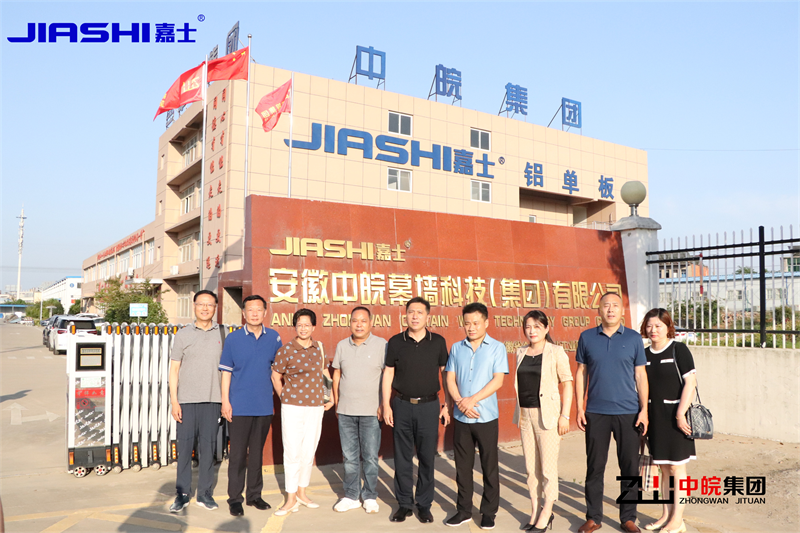 2022617日安徽大剧院季总、张总等领导来到了头号玩家官网登录入口集团旗下-安徽嘉士新型材料有限公司铝单板生产基地。